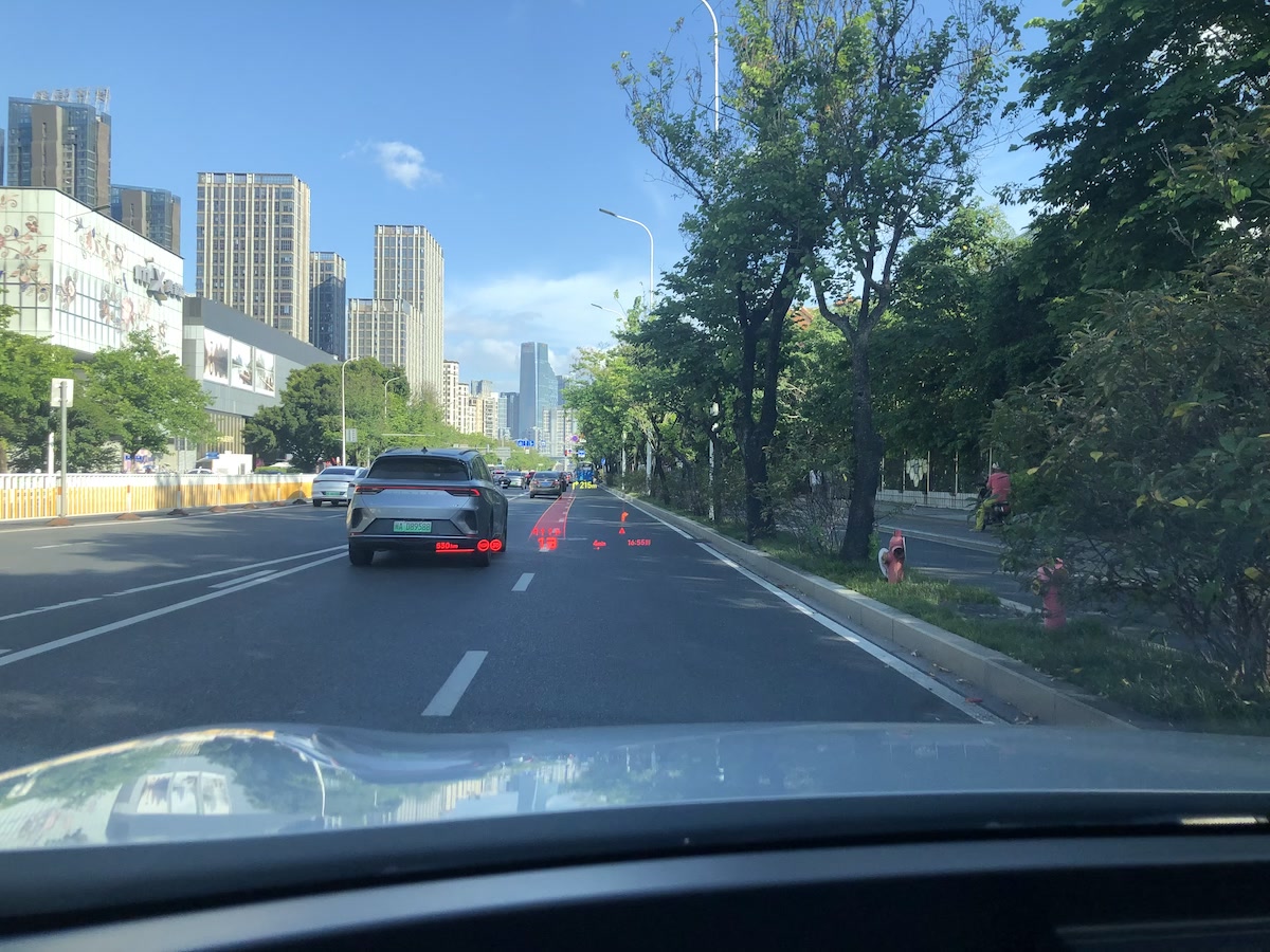 现在看的作用是,落在方向盘正中往前大约 10 米多的间隔(片面感触,个体差异感知不同),比方前方需求急转弯,上面的显现会有个左转的方向键。驾驭员看到之后,能够有必定的时刻处理方向。这个应该需求一段时刻探索,久了你才干把握实践应该做出反响的时刻。