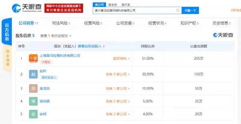 开始在 2013 年上线,选用 UGC 形式供给内容,喜马拉雅曾取得来自 SIG、KPCB、Sierra Ventures 的融资。贵州喜马拉雅网络科技有限公司成立于 2019 年 1 月,注册资本 500 万。在公司的股东信息中,上海喜马拉雅科技有限公司持股 51%,为最大股东,第二大股东为赵林,持股份额 30%;吴龙凤、邹邦银、安柯别离持股 10%、5% 和 4%。余建军为公司终究受益人,持股份额为 30%。