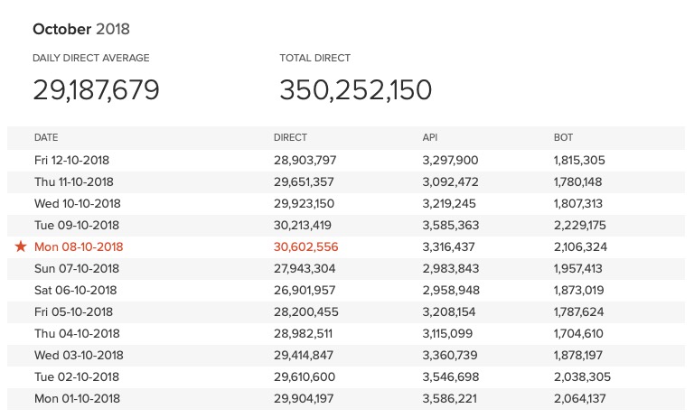 显现,该查找引擎的查找次数在 10 月 8 日和 9 日接连两天打破 3 千万,而这一数字在去年同期还不到 2 千万,一年内增加超越 50%。数据显现,DuckDuckGo 十月到现在的日均查找量现已超越 2900 万,而九月的日均查找量超越 2700 万,而八月则是 2452 万,七月为 2353 万。